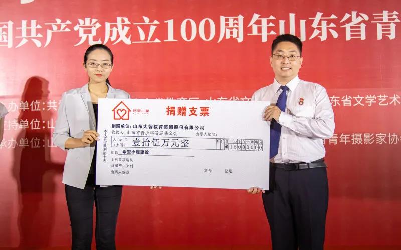 活動現(xiàn)場,大智教育集團(tuán)向山東省青年發(fā)展基金會捐款15萬元,用于支持“希望小屋”建設(shè)。