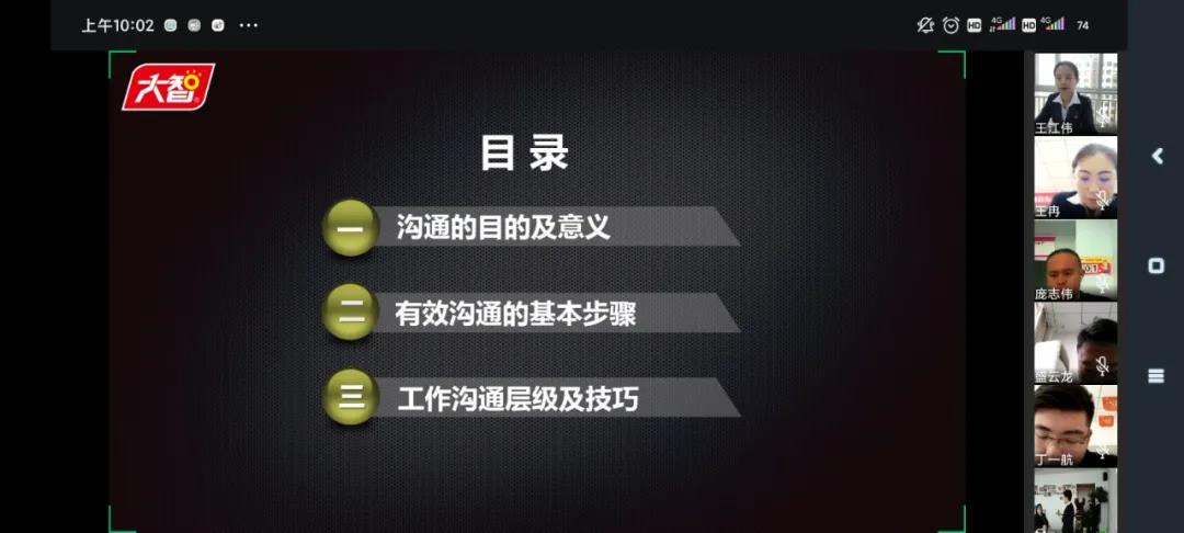 2月26日上午,大智教育集團黨委書記王現(xiàn)芹為大智黨員們帶來“向陽計劃”培訓(xùn)第二講精彩內(nèi)容分享——《管理就是溝通》。部分黨員現(xiàn)場參加培訓(xùn),其他各區(qū)域(公司)的黨員們通過視頻連線的方式參加培訓(xùn)。