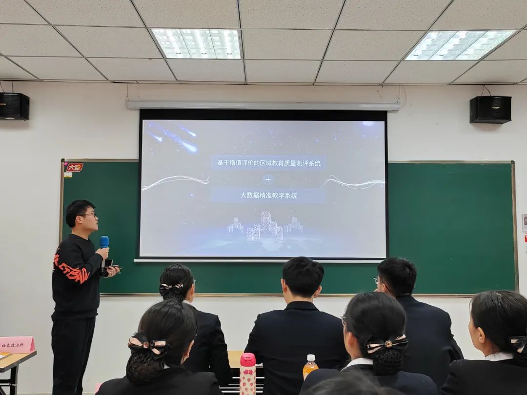 王老師從“增值分析、全角色分析報告、定制評價標準”三個層面對系統(tǒng)進行了解讀,同時從學校角度、學生角度,進行了成績管理的展示。以學生為例,可依據(jù)一定學習周期學業(yè)成績變化進行縱向與橫向比對,建立直觀的數(shù)據(jù)模型,依據(jù)學業(yè)質(zhì)量測評答卷情況建立錯題分析,分析考點掌握情況,制定個性化提升學習方案,并且依據(jù)大數(shù)據(jù)技術(shù)與數(shù)據(jù)庫資源出具學生個性化“一生一案”錯題本。科技與教育的融合是未來發(fā)展的必經(jīng)之路??萍贾品?wù),數(shù)據(jù)提升質(zhì)量!大智金復將技術(shù)深度融入教育教學,發(fā)揮數(shù)據(jù)“不可篡改、全程留痕、可以追溯、集體維護和公開透明”等特點,引進技術(shù)學習伙伴協(xié)助進行時間和任務(wù)管理、分享學習資源、激發(fā)學習氛圍、參與或引導學習互動,為教師教學和學生學習提供支持服務(wù),形成一種新型教學形態(tài)。
