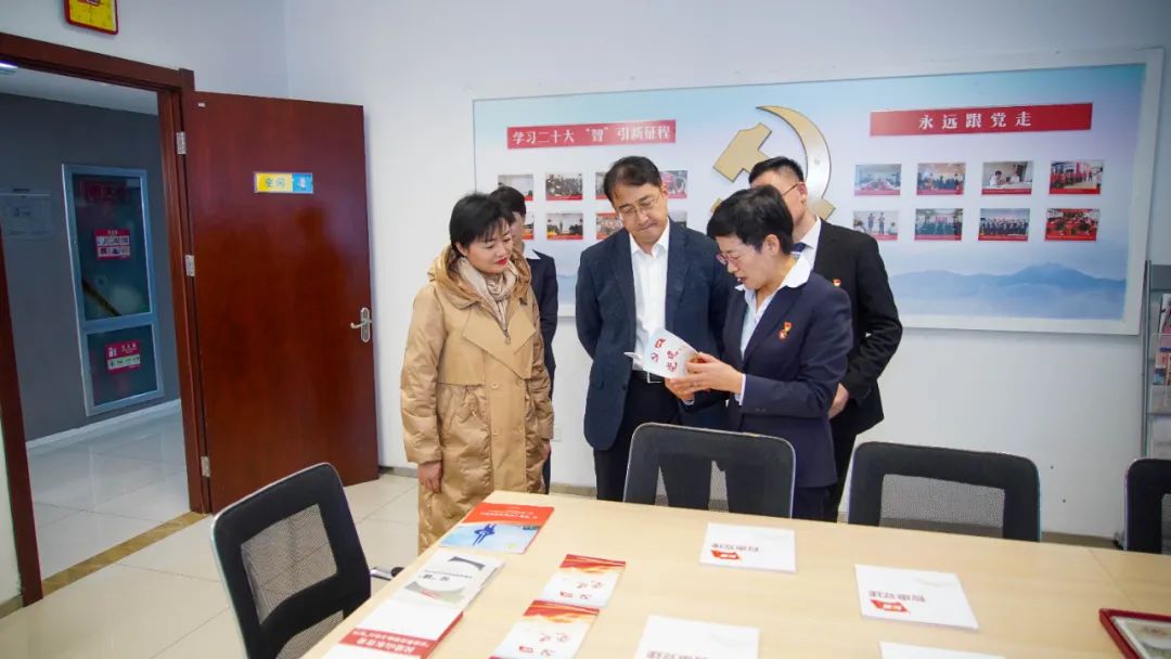 參觀黨員活動(dòng)室,翻閱查看大智黨建相關(guān)資料。