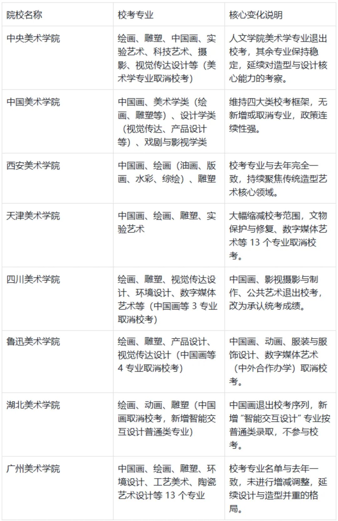 隨著多所美院陸續(xù)發(fā)布2026年本科招生政策,八大美院??紝I(yè)名單已全部揭曉。今年??汲尸F(xiàn)“規(guī)??s減、聚焦核心、新興補(bǔ)位”的鮮明特征,既有多個...