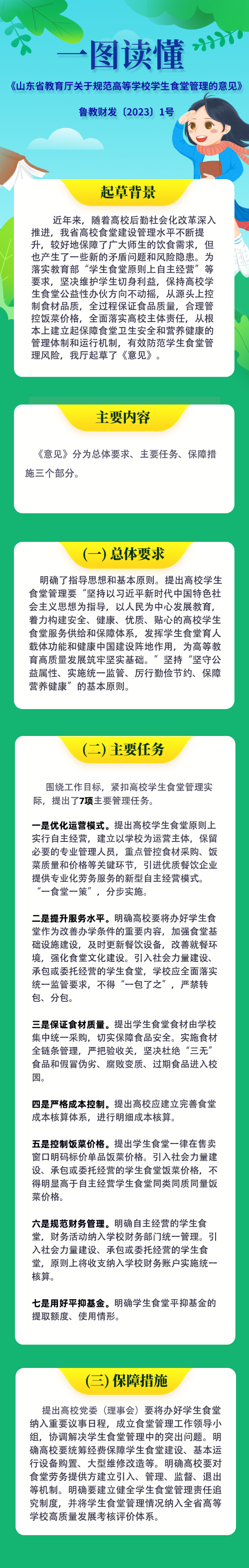 8月30日,《山東省教育廳關(guān)于規(guī)范高等學(xué)校學(xué)生食堂管理的意見》(魯教財發(fā)〔2023〕1號,以下簡稱《意見》)正式印發(fā),現(xiàn)解讀如下。一、起草背...