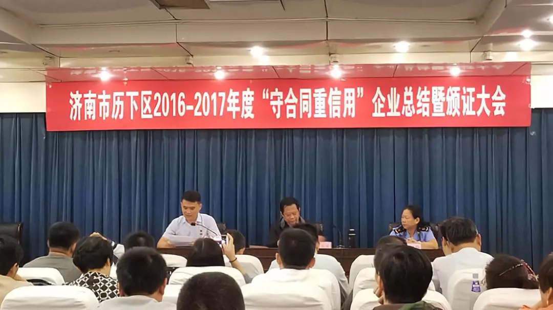 會上,李緒梅宣讀了濟南市歷下區(qū)2016-2017年度“守合同重信用”企業(yè)名單,向榮獲“守合同重信用”企業(yè)代表頒證授牌。