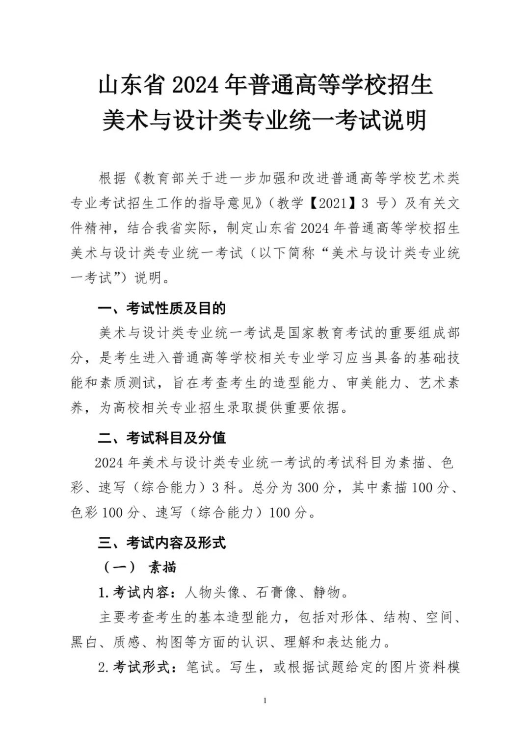 美術(shù)與設計類專業(yè)統(tǒng)考包括素描、色彩、速寫(綜合能力)三個科目,每科目分值均為100分,總分為300分。