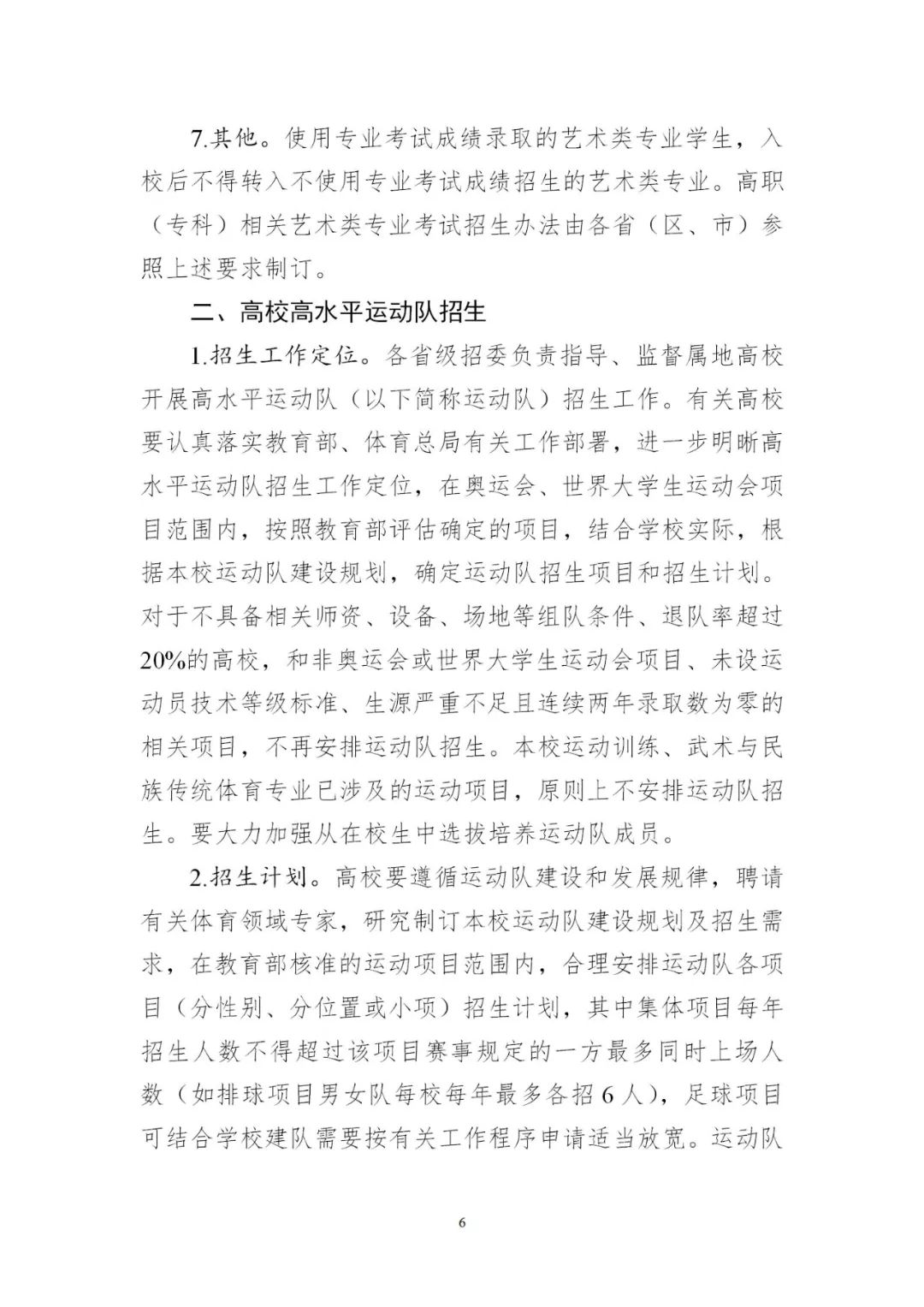 高校藝術(shù)類專業(yè)、高水平運(yùn)動(dòng)隊(duì)、保送生招生工作嚴(yán)格按照本通知要求執(zhí)行。教育部授權(quán)各地各高校組織的單獨(dú)招生、強(qiáng)基計(jì)劃、高校專項(xiàng)、綜合評(píng)價(jià)、拔尖創(chuàng)新人才選拔培養(yǎng)等考試招生工作參照?qǐng)?zhí)行。本通知未盡事宜按照當(dāng)年有關(guān)招生工作規(guī)定執(zhí)行。請(qǐng)各省級(jí)教育行政部門將本通知轉(zhuǎn)發(fā)至本行政區(qū)域內(nèi)有關(guān)高校。