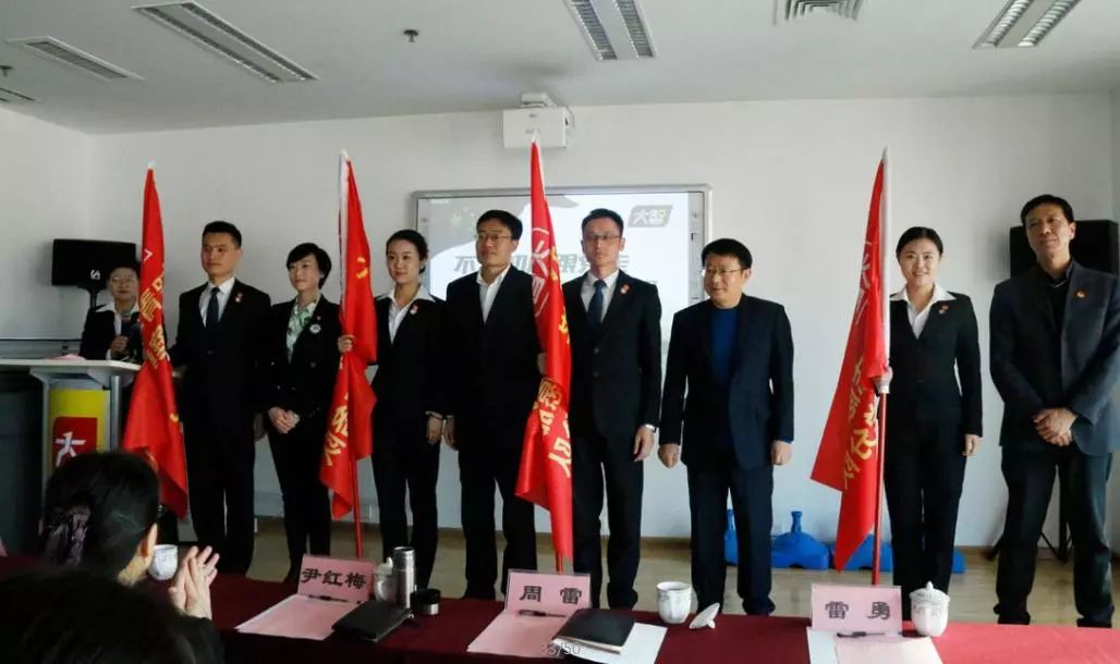 共青團(tuán)濟(jì)南市委副書記王友進(jìn),共青團(tuán)濟(jì)南市委組織部部長雷勇、中共濟(jì)南市歷下區(qū)委常委周雷、共青團(tuán)歷下區(qū)委副書記杜慶姝為“大智青年志愿服務(wù)隊”授旗。