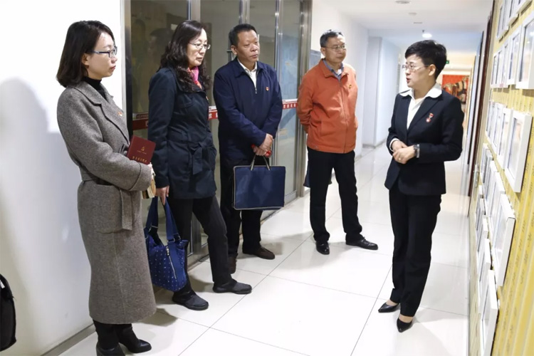 王現(xiàn)芹首先向大家介紹了大智黨委組織架構(gòu)。隨后,帶領(lǐng)大家參觀了大智控股集團(tuán)黨建長廊,重點了解了大智“智惠黨建一三九”工作模式以及黨建引領(lǐng)下的大智 “一帶一促”群團(tuán)建設(shè)理念和“智惠+”群團(tuán)建設(shè)模式。