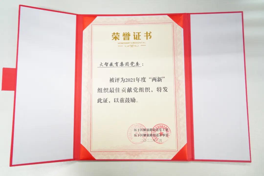 近日,大智教育集團(tuán)黨委被評(píng)為2021年度“兩新”組織最佳貢獻(xiàn)黨組織。