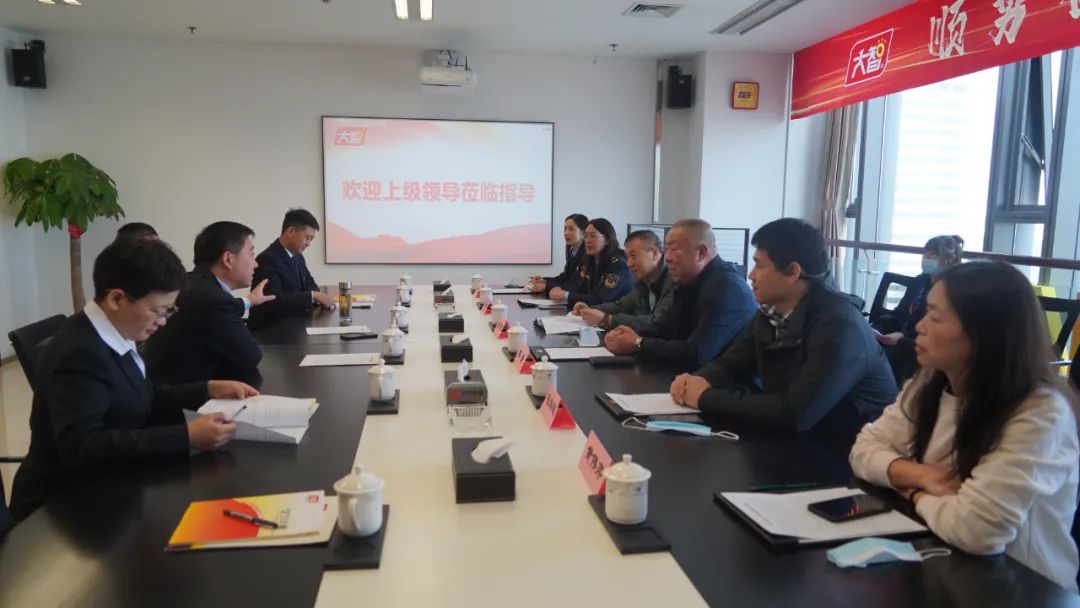3月23日,濟(jì)南市市場(chǎng)監(jiān)管局非公黨建辦公室主任呂安榮、歷下個(gè)體私營(yíng)企業(yè)黨委副書(shū)記韓青一行蒞臨大智控股集團(tuán)總部調(diào)研。大智黨委書(shū)記王現(xiàn)芹,創(chuàng)始人、董事長(zhǎng)張維東熱情接待。