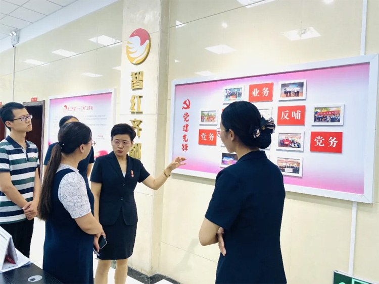 黃文娟一行首先參觀了大智淄博區(qū)域黨建長廊,詳細(xì)了解了淄博區(qū)黨支部“智紅齊都一三三四”工作法及團(tuán)建工作開展情況。
