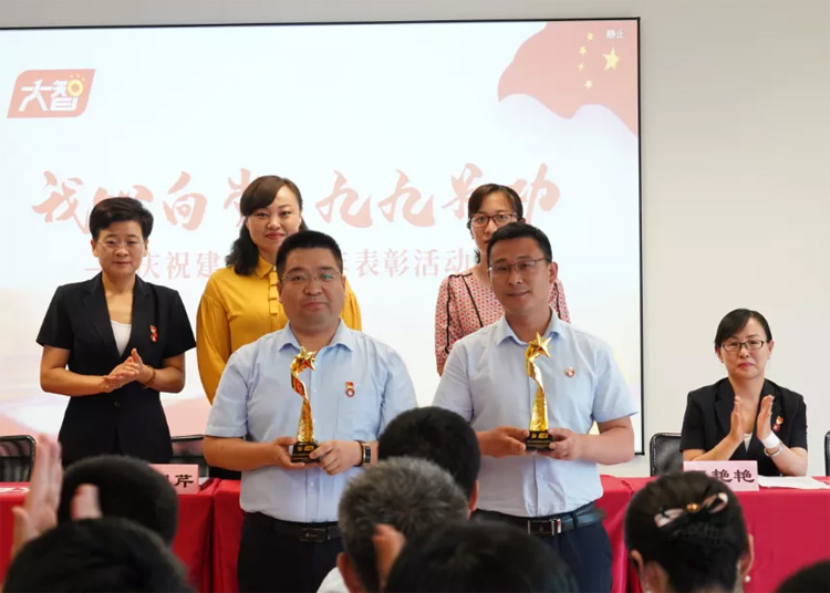 現(xiàn)場還對大智此前開展的“書記上黨課”微黨課大賽和“學(xué)習(xí)強國”知識競賽獲獎黨員進行了表彰。