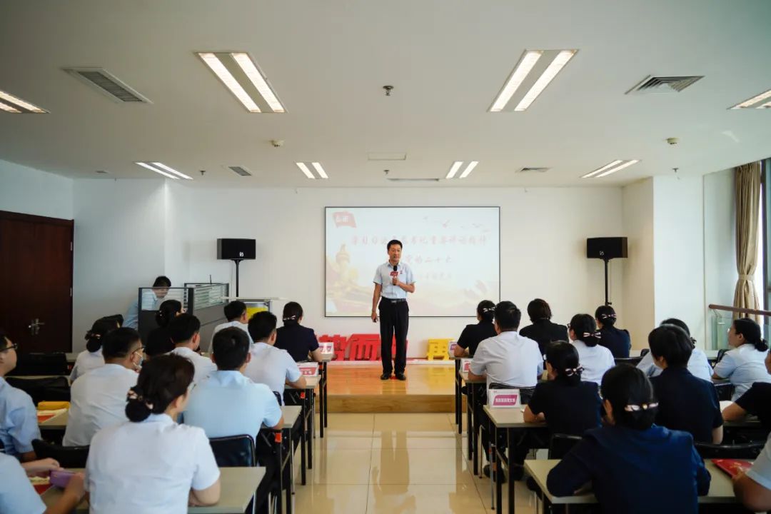 現(xiàn)場,大家學(xué)習(xí)了習(xí)近平總書記在省部級主要領(lǐng)導(dǎo)干部“學(xué)習(xí)習(xí)近平總書記重要講話精神,迎接黨的二十大”專題研討班上的重要講話精神以及《中國共產(chǎn)黨黨徽黨旗條例》內(nèi)容。