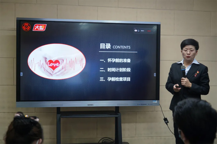 課堂上,孕前指導學校的組織者——大智控股集團黨委書記、婦聯(lián)主席王現芹從“懷孕前的準備”“時間計劃階段”“孕前檢查項目”三個方面為大家?guī)砹嗽敿毜脑星爸R解讀,同時結合自身經歷,現場為員工們進行答疑解惑。