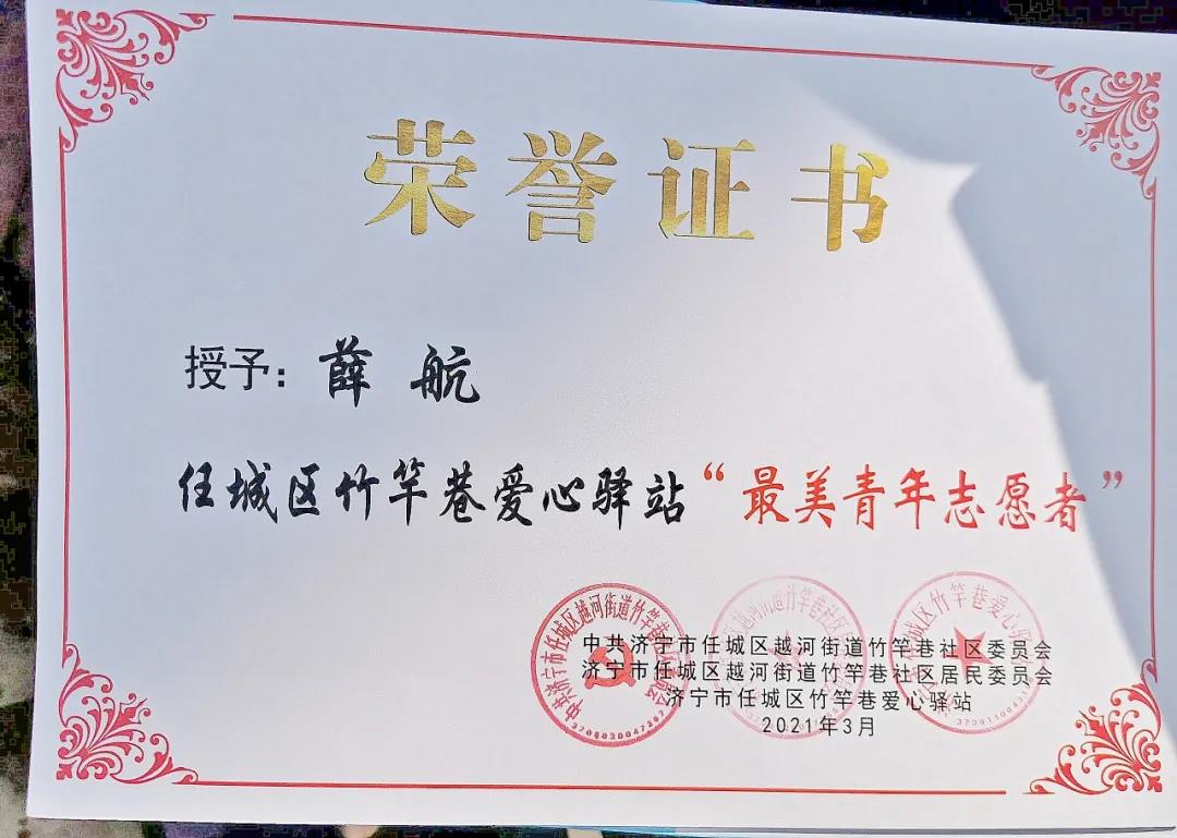 濟(jì)寧區(qū)域團(tuán)支部聯(lián)合竹竿巷社區(qū)、蔣林社區(qū)、濟(jì)寧市雷鋒紀(jì)念館、濟(jì)寧市黨章石刻館、濟(jì)寧市青年志愿者協(xié)會(huì)開(kāi)展“慶建黨百年,弘揚(yáng)雷鋒精神”公益活動(dòng),南池分校市場(chǎng)專員薛航家人被越河街道評(píng)選為“優(yōu)秀青年志愿者。”