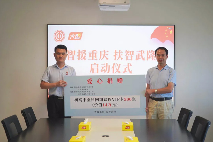 捐贈(zèng)儀式上,大智為重慶武隆區(qū)捐贈(zèng)總價(jià)值14萬(wàn)元的大智公開課(初高中全科網(wǎng)絡(luò)課程)VIP卡500張。