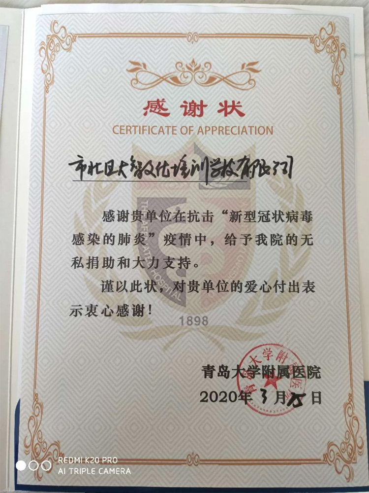 大智青島區(qū)域走進青島大學(xué)附屬醫(yī)院為一線醫(yī)務(wù)人員捐贈線上課程“天使卡”2000張,總價值560000元。