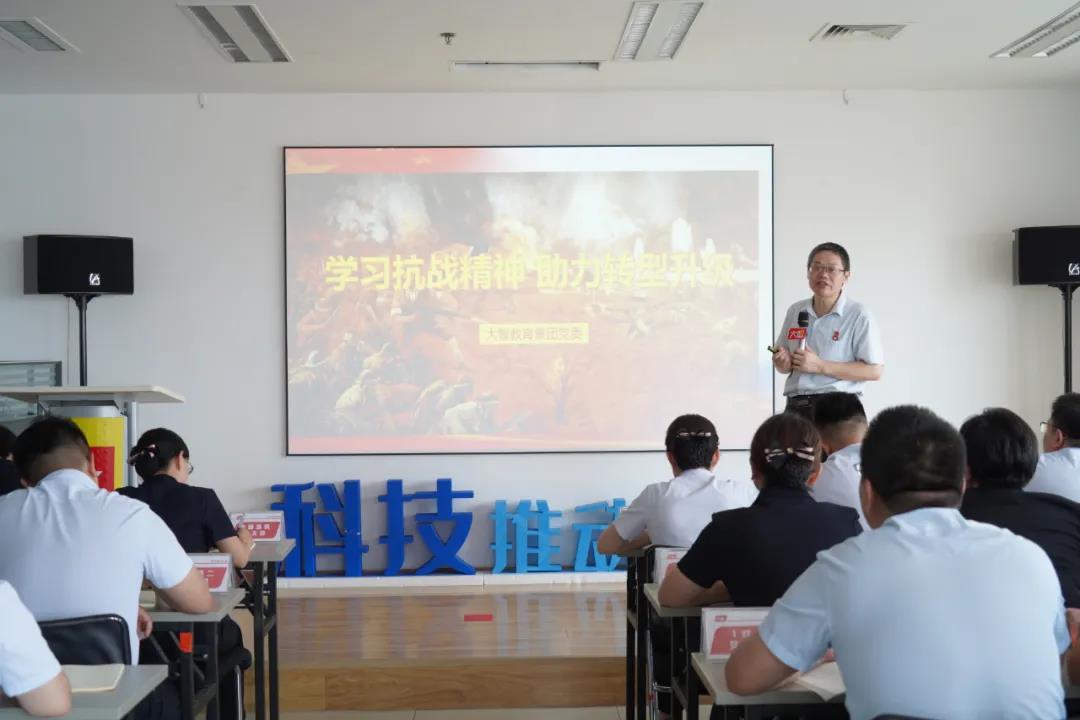 大智教育集團黨委委員劉勤章為黨員們帶來《學習抗戰(zhàn)精神,助力轉(zhuǎn)型升級》的精彩分享,號召全體黨員深刻感受抗戰(zhàn)精神,在轉(zhuǎn)型升級的道路上,與大智同呼吸、共命運,實現(xiàn)自身崗位價值。