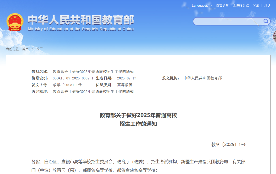 此前,教育部發(fā)布了《教育部關(guān)于做好2025年普通高校招生工作的通知》(點(diǎn)擊查看),其中提到了2025年全國(guó)高考統(tǒng)一考試時(shí)間安排。同時(shí)公布了《...