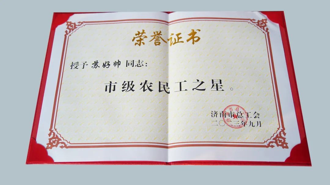 祝賀大智榮獲“市級工友創(chuàng)業(yè)園”,蘇好帥榮獲“市級農民工之星”稱號