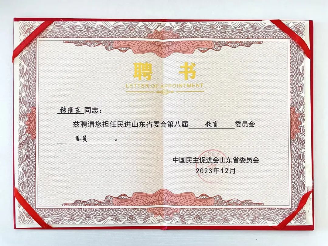 會上,大智控股集團創(chuàng)始人、董事長張維東被民進山東省委教育委員會聘為委員。