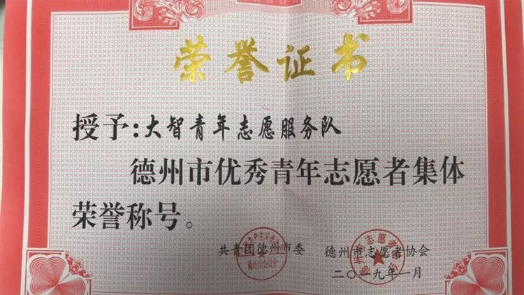 近日,共青團(tuán)德州市委、德州市志愿者協(xié)會(huì)聯(lián)合發(fā)布《關(guān)于公布2018年度德州“最美(優(yōu)秀)青年志愿者、最美(優(yōu)秀)青年志愿者集體”的通知》,大智德州區(qū)域青年志愿服務(wù)隊(duì)被授予“德州市優(yōu)秀青年志愿者集體”。