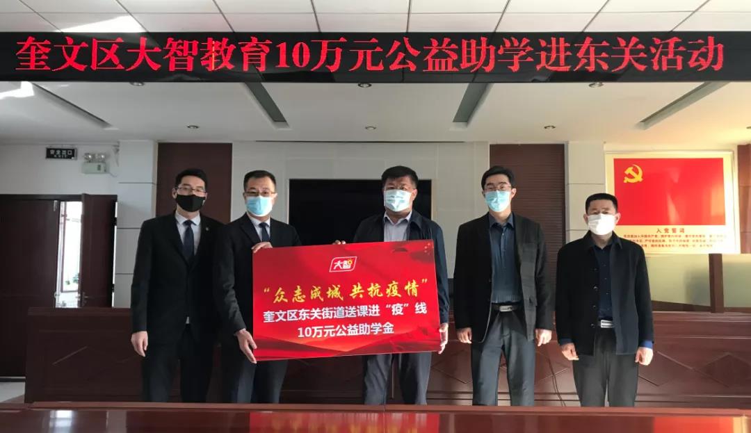 新冠疫情爆發(fā)期間,大智濰坊區(qū)域黨支部牢記使命勇?lián)?dāng),充分發(fā)揮黨員先鋒模范作用,組織發(fā)起募捐活動(dòng),累計(jì)募捐2450元愛心善款和9臺(tái)愛心音響,為疫情防控提供硬件設(shè)備支持,打通疫情防控最后一公里。同時(shí)聯(lián)合奎文區(qū)東關(guān)街道共同發(fā)起“送課進(jìn)‘疫’線公益助學(xué)”活動(dòng),捐贈(zèng)助學(xué)金共10萬元,黨員公益,大智先行!