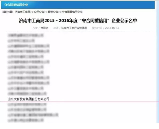 日前,山東省濟(jì)南市工商行政管理局公布2015~2016年度“守合同 重信用”名單, 大智憑借良好的口碑與信譽(yù), 喜獲“守合同重信用” 企業(yè)這...