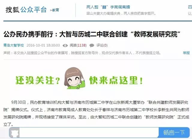 搜狐網(wǎng)10月01日發(fā)文指出:“教師發(fā)展研究院的成立既順應(yīng)了教育發(fā)展需求,也符合教育改革的方向。”