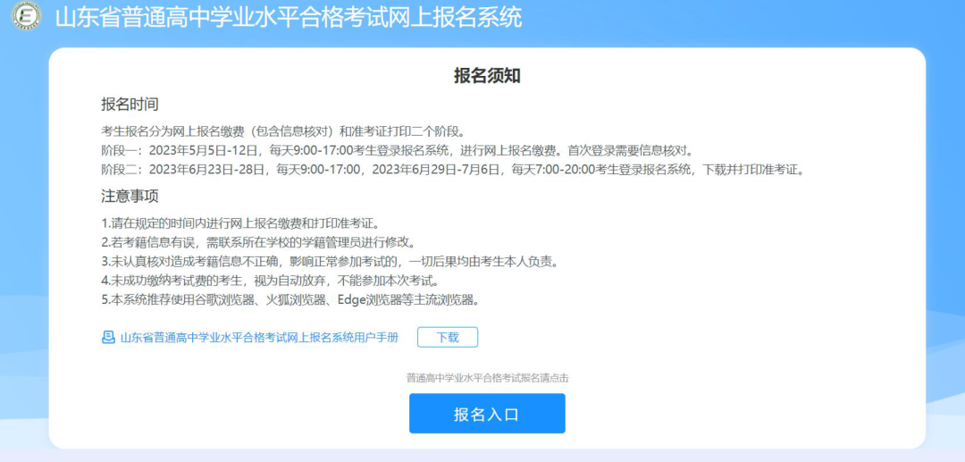 參加山東省2023年冬季普通高中學(xué)業(yè)水平合格考試(以下簡稱冬季合格考)的考生須于10月19日—26日每天9:00—17:00,登錄報名系統(tǒng)進行信息核對,信息核對無誤后直接進行網(wǎng)上選科繳費。繳費成功方視為報名完成,否則視為未報名成功,不能參加本次考試。