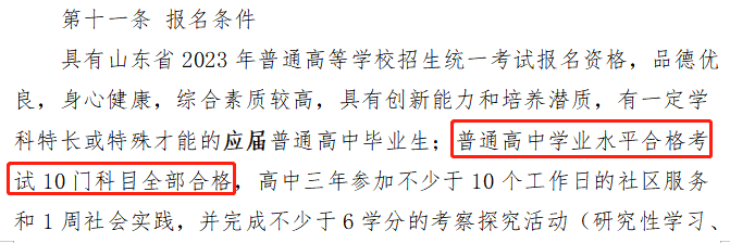?青島大學(xué):在2023年綜合評價招生的報名條件中有明確的規(guī)定,普通高中學(xué)業(yè)水平合格考試10門科目全部合格。