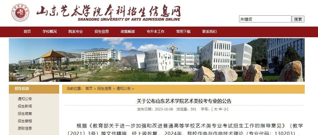 昨天,山東藝術(shù)學(xué)院發(fā)布了《關(guān)于公布山東藝術(shù)學(xué)院藝術(shù)類校考專業(yè)的公告》,公告提到,2024年,學(xué)校作曲與作曲技術(shù)理論(專業(yè)代碼:130203)...