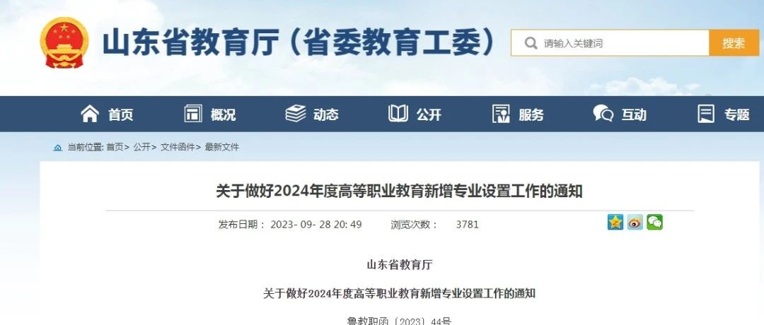 近日,山東省教育廳印發(fā)《關(guān)于做好2024年度高等職業(yè)教育新增專業(yè)設(shè)置工作的通知》。其中提到:就業(yè)率連續(xù)2年低于60%、對口就業(yè)率連續(xù)2年低于...