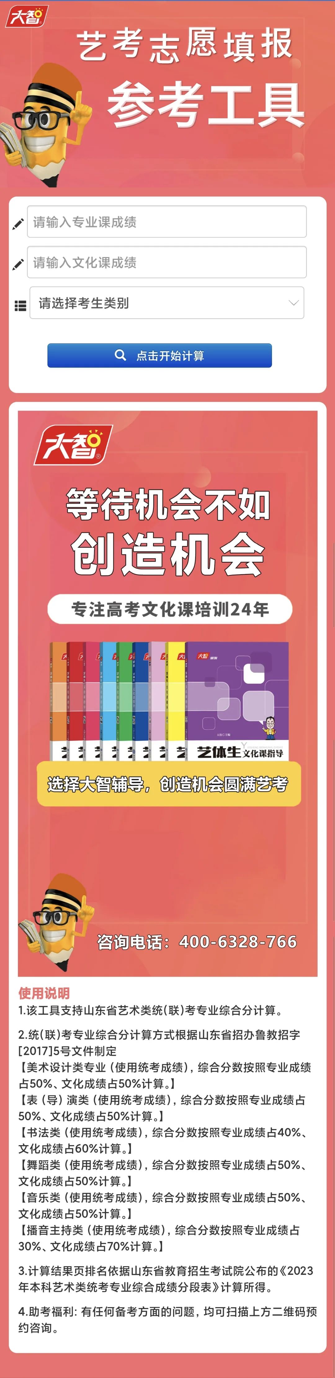 綜合分=文化課成績×50%+專業(yè)統(tǒng)考成績×2.5×50%,藝術類綜合成績總分750分,適用于音樂類、舞蹈類、表(導)演類、美術與設計類、播音與主持類、書法類專業(yè)。