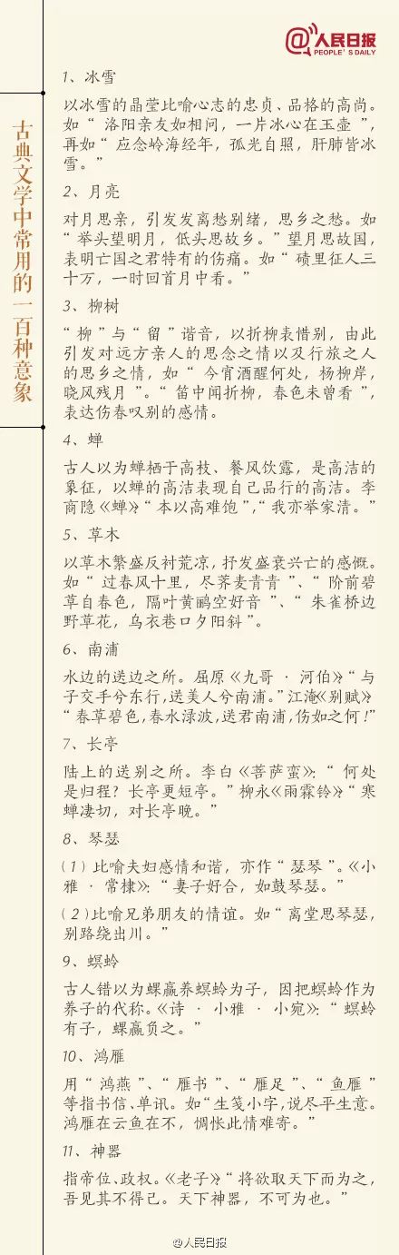 知道這些意象的含義嗎?①秋水:喻指眼睛,形容盼望的迫切;②釣鰲:比喻豪邁的舉止或遠(yuǎn)大的抱負(fù);③青鳥(niǎo):傳書(shū)的信使;④還珠:比喻官吏為政清廉;⑤...