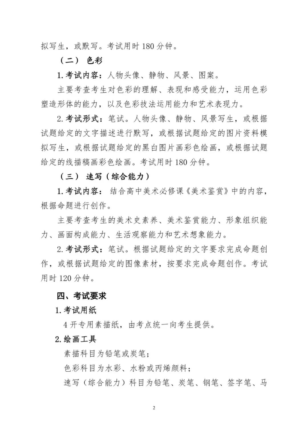 美術(shù)與設(shè)計類專業(yè)統(tǒng)考包括素描、色彩、速寫(綜合能力)三個科目,每科目分值均為100分,總分為300分。