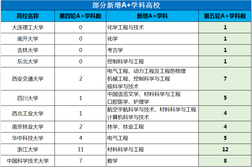 據(jù)統(tǒng)計:第五輪學科評估中新增A+學科最多的大學分別是西安交通大學(5個)、四川大學(4個)、西北工業(yè)大學(3個)。
