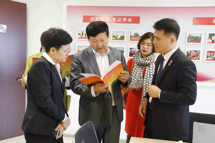 在參觀過程中,雙方多次就黨建工作展開探討,大家對(duì)大智的黨建成果給予高度評(píng)價(jià)。隨后,雙方在集團(tuán)接待室展開了座談交流。