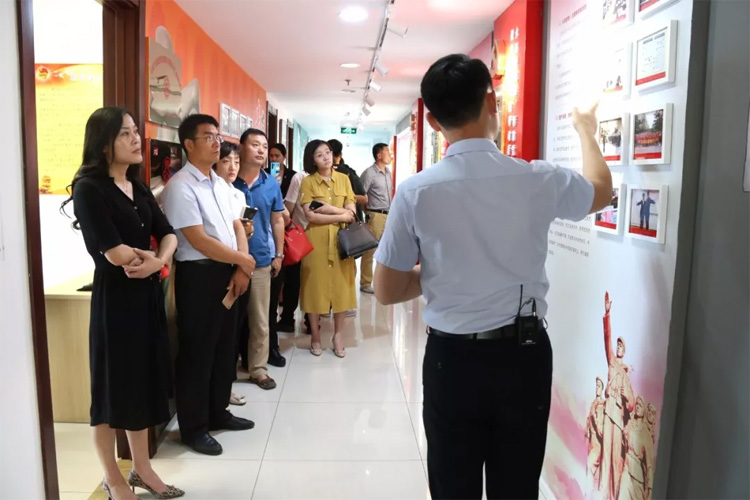 常廣成首先向大家介紹了大智黨委組織架構(gòu),并帶領(lǐng)大家參觀了大智控股集團黨群陣地,了解了大智“智惠黨建一三九”工作模式以及黨建引領(lǐng)下的大智 “一帶一促”群團建設(shè)理念和“智惠+”群團建設(shè)模式。隨后又通過視頻、圖片、文字資料,對于大智黨建工作進行了詳細展示。