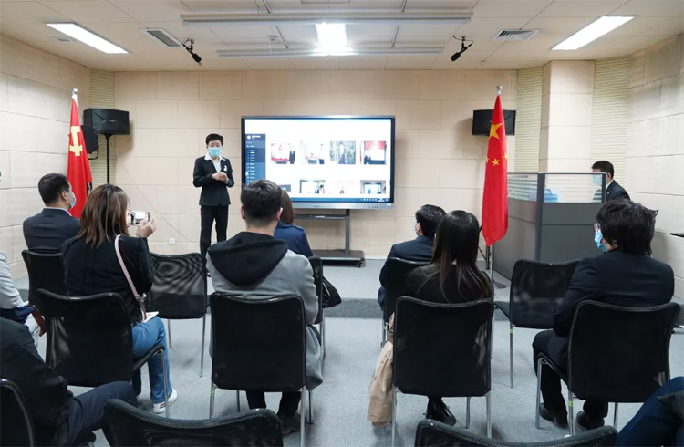 大智控股集團黨委書記王現(xiàn)芹帶領大家參觀了大智黨群陣地,詳細介紹了大智“智惠黨建一三九”工作模式以及黨建引領下的大智 “一帶一促”群團建設理念和“智惠+”群團建設模式。