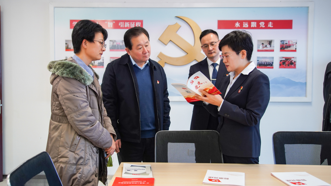 參觀黨員活動(dòng)室,翻閱查看大智黨建相關(guān)資料。