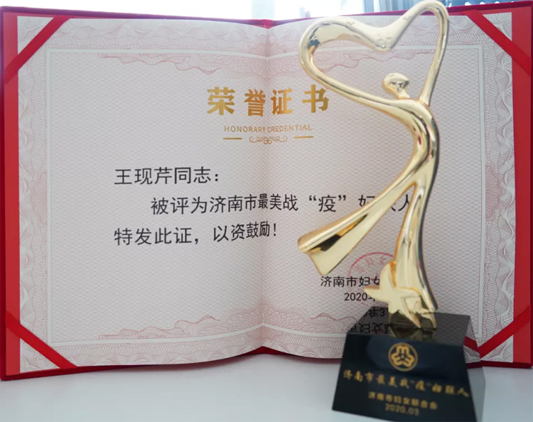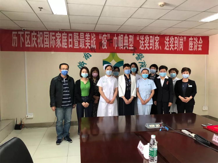 05月13日,濟(jì)南市歷下區(qū)慶祝國(guó)際家庭日暨最美戰(zhàn)“疫”巾幗典型“送獎(jiǎng)到家、送獎(jiǎng)到崗”座談會(huì)在歷下區(qū)人民醫(yī)院召開(kāi)。歷下區(qū)委副書記尹紅梅,歷下區(qū)婦聯(lián)黨組書記、主席李健及獲獎(jiǎng)代表參會(huì)。會(huì)上,尹紅梅為大智控股集團(tuán)黨委書記、婦聯(lián)主席王現(xiàn)芹頒發(fā)了市區(qū)兩級(jí)“最美戰(zhàn)‘疫’婦聯(lián)人”榮譽(yù)獎(jiǎng)杯和證書。