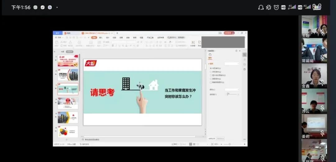 首先,王現(xiàn)芹用問題拋磚引玉:“當工作和家庭發(fā)生沖突時你該怎么辦?”隨后,王現(xiàn)芹從家庭與工作的關系、平衡家庭與工作的小技巧兩個方面,結(jié)合自身的實踐和經(jīng)歷,為大家詳細講解了該如何正確處理工作和家庭的關系。