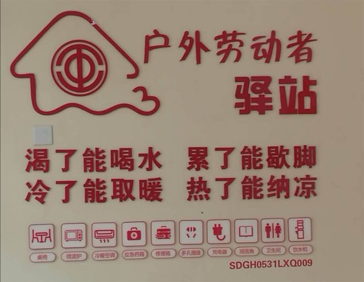 據(jù)悉,“戶外勞動(dòng)者驛站”是山東省總工會(huì)在全省范圍內(nèi)持續(xù)推動(dòng)建設(shè)的重點(diǎn)項(xiàng)目,旨在為廣大戶外勞動(dòng)者提供服務(wù)。驛站建成后,將以環(huán)衛(wèi)工、快遞員、協(xié)管員等戶外職工為主要服務(wù)對(duì)象,內(nèi)部設(shè)飲水機(jī)、空調(diào)、微波、沙發(fā)等生活設(shè)施,配備手機(jī)充電器、便民工具箱、醫(yī)療藥箱等,可有效解決戶外職工的飲水、避暑取暖、如廁、手機(jī)充電等生活實(shí)際需求,為廣大戶外勞動(dòng)者提供實(shí)實(shí)在在的溫暖與關(guān)懷。
