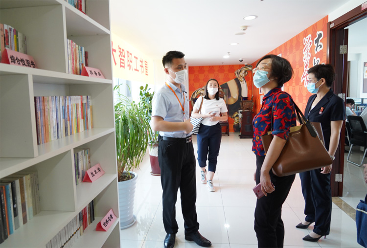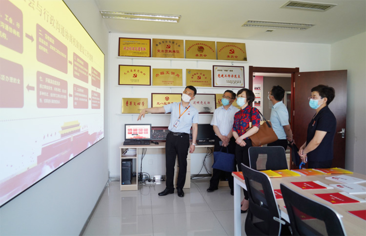 06月03日,山東省委組織部組織二處四級調(diào)研員朱曉峰、濟南市總工會副主席劉祖亭及省調(diào)研組、濟南市總工會的相關(guān)同志蒞臨大智調(diào)研企業(yè)民主管理情況。大智控股集團黨委書記王現(xiàn)芹、工會主席常廣成熱情接待。