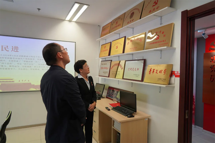 在集團(tuán)黨委書記王現(xiàn)芹的帶領(lǐng)下,紀(jì)宏偉一行首先參觀了大智黨建長(zhǎng)廊、大智黨校。隨后聽取了王現(xiàn)芹就集團(tuán)黨委統(tǒng)戰(zhàn)相關(guān)工作的匯報(bào)。