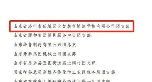 濟(jì)寧市任城區(qū)大智教育培訓(xùn)學(xué)校有限公司團(tuán)支部榮獲“全國五四紅旗團(tuán)支部”稱號