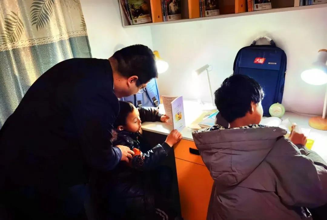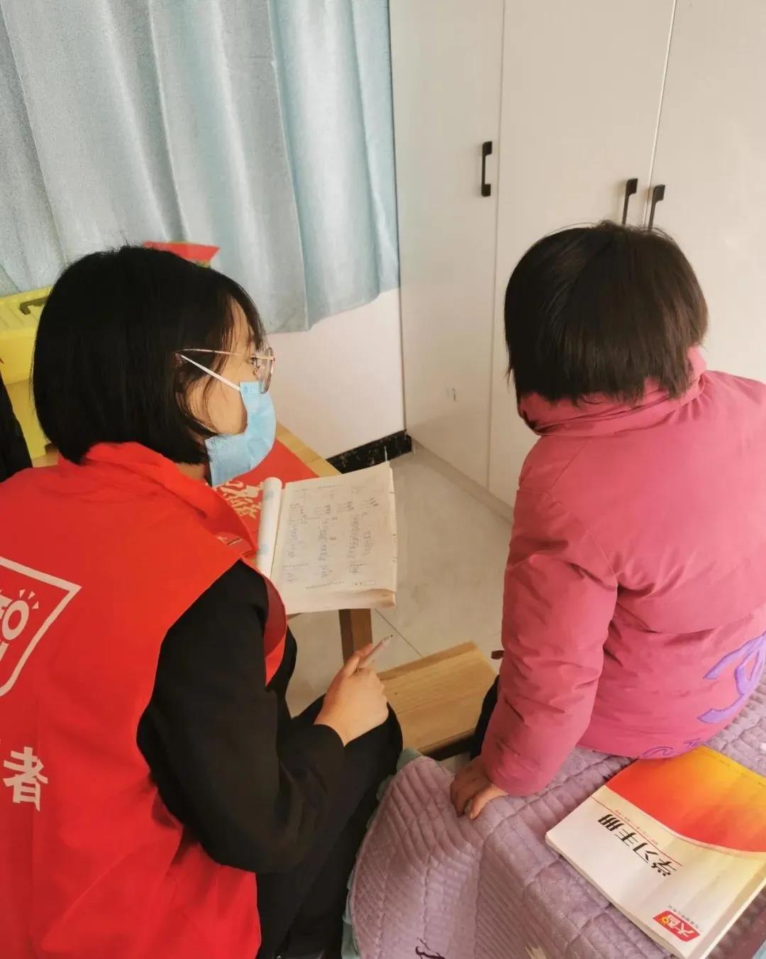 志愿者幫助孩子檢查寒假作業(yè)